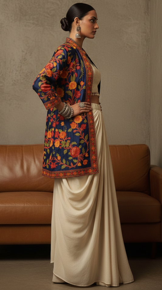 Kashmiri Aari Silk Short Jacket
