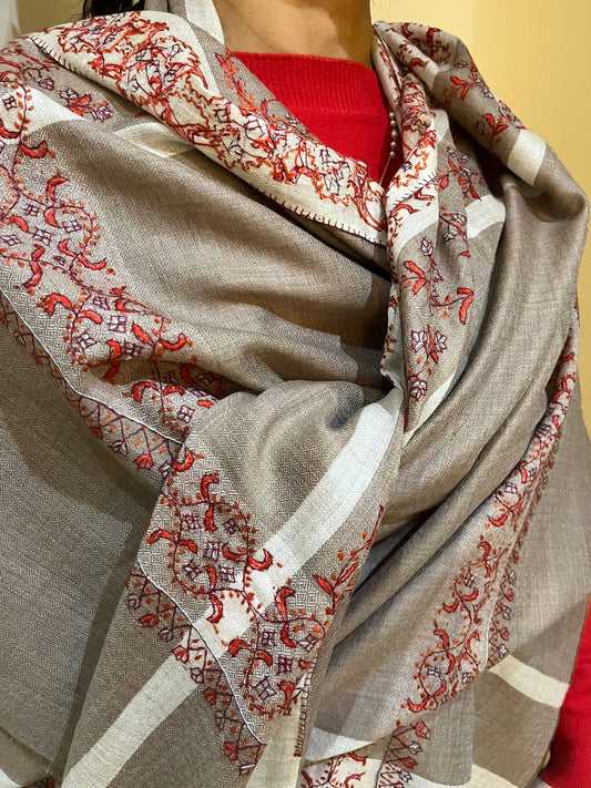 Cashmere Blend Pashmina Shawl with Sozni Needlework | Hand Embroidered