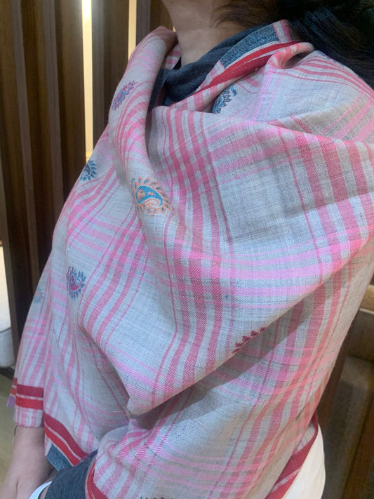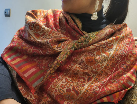 Indian handmade warm soft to touch light in Weight multicoloured Kanni Weave paisley design pashmina with blend of cashmere wool for women